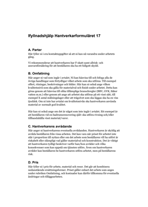 Det finns förklaringar till Hantverkarformuläret som kan vara till hjälp när du ska fylla i avtalet. Du finner ifyllnadshjälpen genom att välja dokument i rullisten.